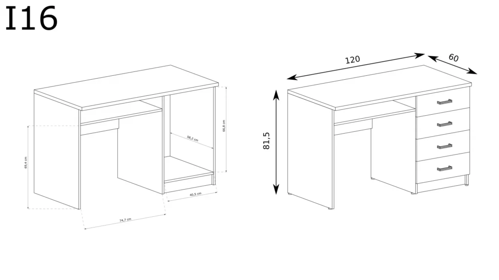 Biurko z kolekcji Indianapolis. Posiada cztery pojemne szuflady na dokumenty czy różne akcesoria. Znajduje się w nim również wysuwana półka na klawiaturę, laptopa lub inne rzeczy. Biurko jest bardzo eleganckie. Wpasuję się do wielu aranżacji, pasuje do salonu, jak i biura bądź gabinetu. Mile będzie się na nim odrabiać prace domowe, biurowe, jest dla każdego. Metalowe uchwyty podkreślają wyjątkowość mebla.