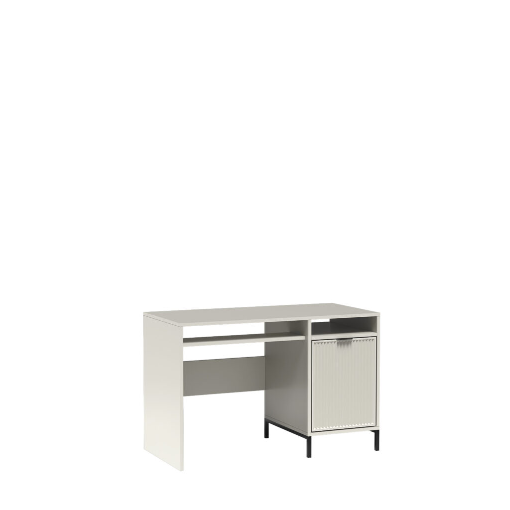 Nowoczesne biurko z kolekcji LINKaSTYLES w w trzech kolorach – cashmere, indigo i green stone. Idealnie wpasuje się do pokoju młodzieżowego bądź biura. W meblu znajdziemy wysuwaną półkę na klawiaturę od komputera, ale też szafkę po prawej stronie z półką, która dzieli nam przestrzeń na dwie odrębne części.