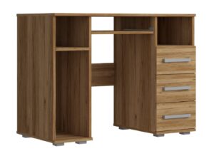 Nowoczesne biurko z eleganckiej serii Maximus. System Maximus to seria nowoczesnych i bardzo praktycznych mebli. Meble te charakteryzują się dużą wytrzymałością, oraz atrakcyjnym wyglądem. Producent zadbał o najmniejszy szczegół każdego z elementów tego systemu. Meble wykonane zostały z wysokogatunkowej płyty laminowanej z obrzeżami ABS. System Maximus to szeroka gama różnorodnych elementów mebli, dzięki którym szybko i z łatwością urządzisz salon czy pokój gościnny. Meble zachwycą swoją pojemnością oraz funkcjonalnością. Biurko wyposażone jest w 3 praktyczne szufladki, wysuwem na klawiaturę oraz półkami. Sprawdź inne elementy zestawu z serii Maximus na Naszej stronie internetowej.