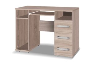 Nowoczesne biurko z eleganckiej serii Maximus. System Maximus to seria nowoczesnych i bardzo praktycznych mebli. Meble te charakteryzują się dużą wytrzymałością, oraz atrakcyjnym wyglądem. Producent zadbał o najmniejszy szczegół każdego z elementów tego systemu. Meble wykonane zostały z wysokogatunkowej płyty laminowanej z obrzeżami ABS. System Maximus to szeroka gama różnorodnych elementów mebli, dzięki którym szybko i z łatwością urządzisz salon czy pokój gościnny. Meble zachwycą swoją pojemnością oraz funkcjonalnością. Biurko wyposażone jest w 3 praktyczne szufladki, wysuwem na klawiaturę oraz półkami. Sprawdź inne elementy zestawu z serii Maximus na Naszej stronie internetowej.