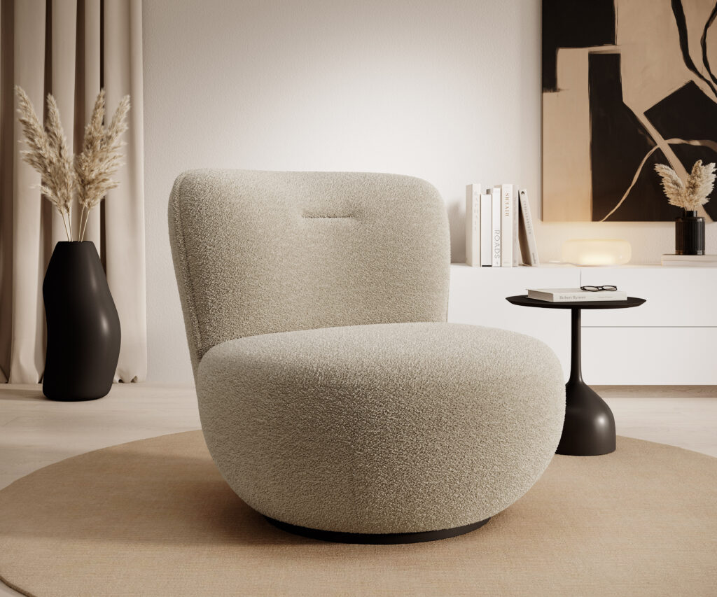 Meble wykonane z tkaniny Lambi o strukturze bouclé stały się jednym z wiodących trendów w dziedzinie designu wnętrz.