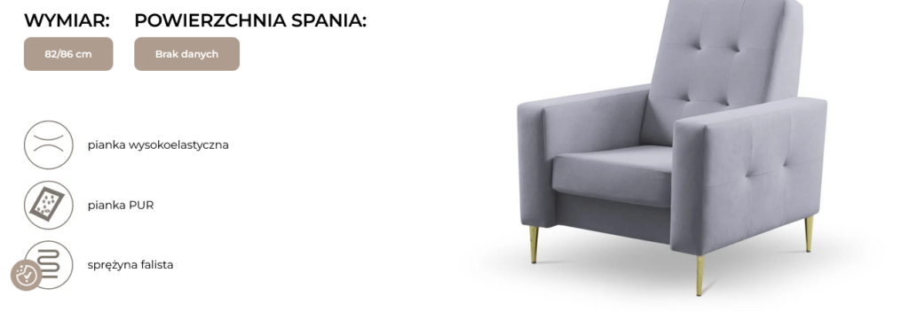 Komfort użytkowania gwarantują poduszki siedziskowe, których wnętrza zawierają między innymi pianki poliuretanowe, pianki wysokoelastyczne.