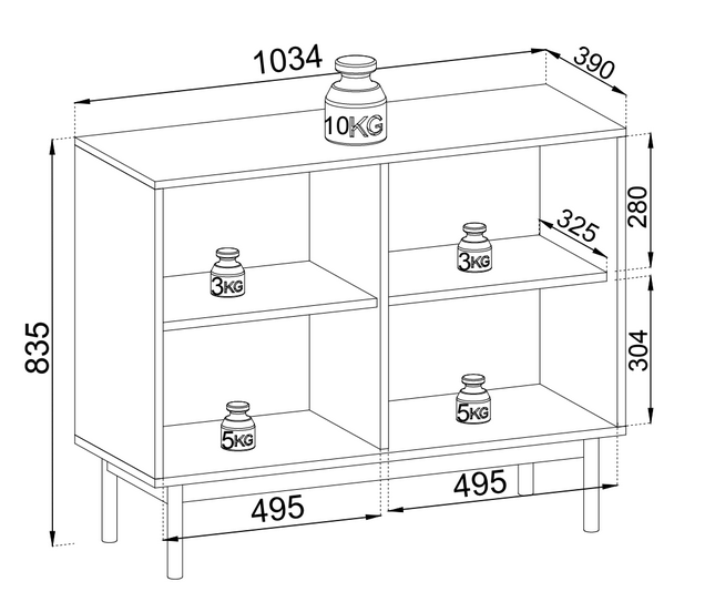 – szerokość 103,4 cm / wysokość 83,5 cm / głębokość 39 cm
