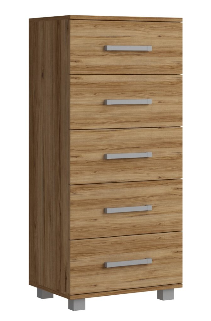 Nowoczesna komoda z eleganckiej serii Maximus. System Maximus to seria nowoczesnych i bardzo praktycznych mebli. Meble te charakteryzują się dużą wytrzymałością, oraz atrakcyjnym wyglądem. Producent zadbał o najmniejszy szczegół każdego z elementów tego systemu. Meble wykonane zostały z wysokogatunkowej płyty laminowanej z obrzeżami ABS. System Maximus to szeroka gama różnorodnych elementów mebli, dzięki którym szybko i z łatwością urządzisz salon czy pokój gościnny. Meble zachwycą swoją pojemnością oraz funkcjonalnością. Komoda posiada 5 szuflad. Sprawdź inne elementy zestawu z serii Maximus na Naszej stronie internetowej.