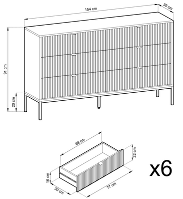– szerokość 154 cm / wysokość 91 cm / głębokość 39 cm