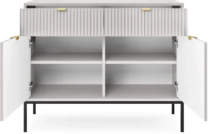 Komoda Nova KSZ104 – Szara / stelaż czarny / uchwyty złote – Piaski