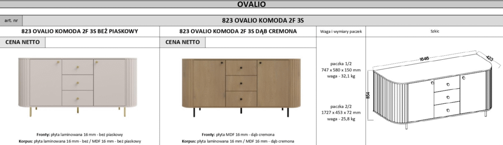 Komoda Ovalio Typ – 823 2F 3S – Beż Piaskowy