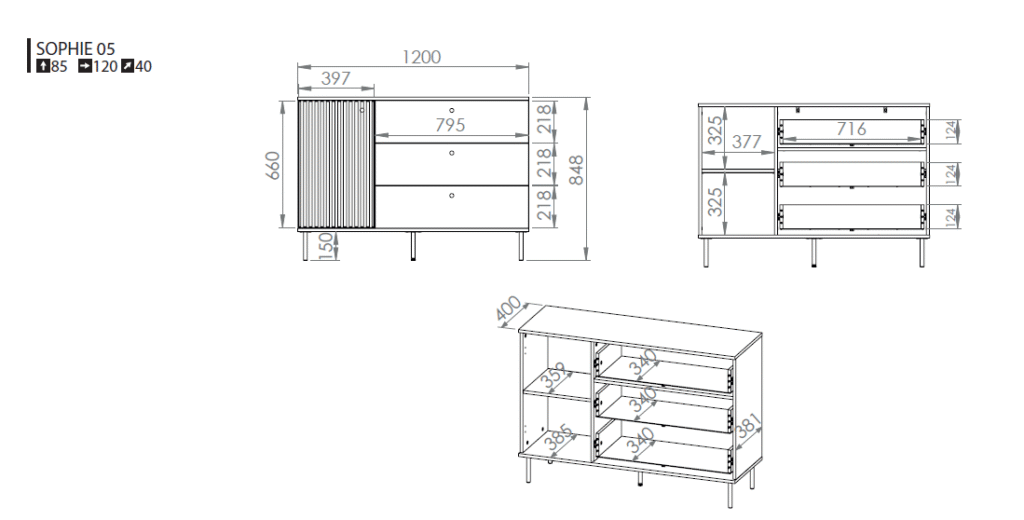 Meble z kolekcji Sophie to idealny wybór do współczesnego salonu, sypialni czy przedpokoju. Dzięki systemowi złożonemu z wielu brył urządzisz swoje wymarzone wnętrze.