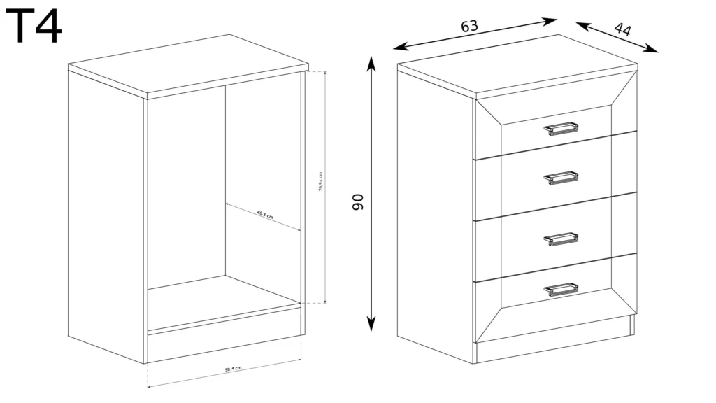 ✅ Praktyczność: Wąska, wysoka komoda, posiadająca cztery pojemne szuflady, idealne do organizacji