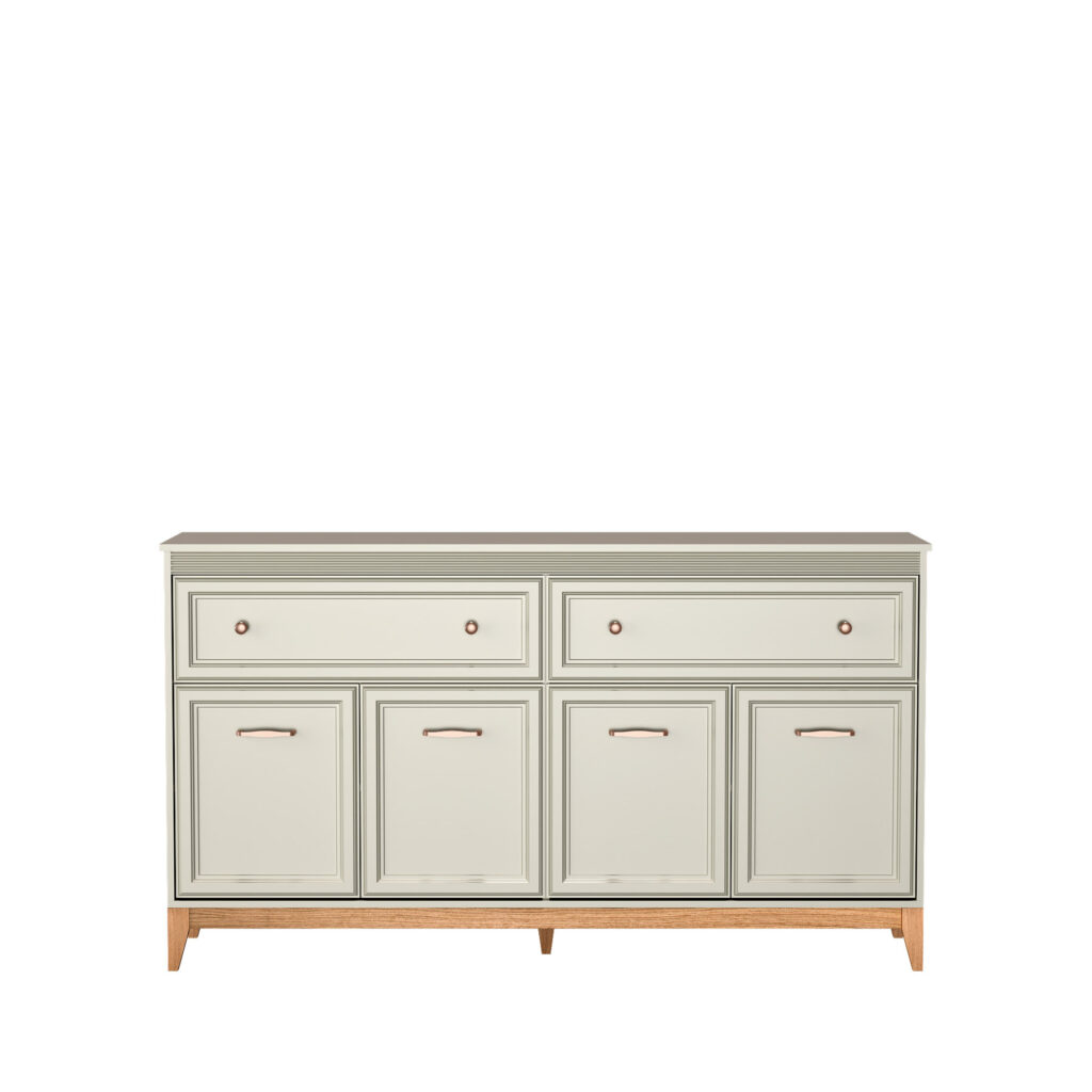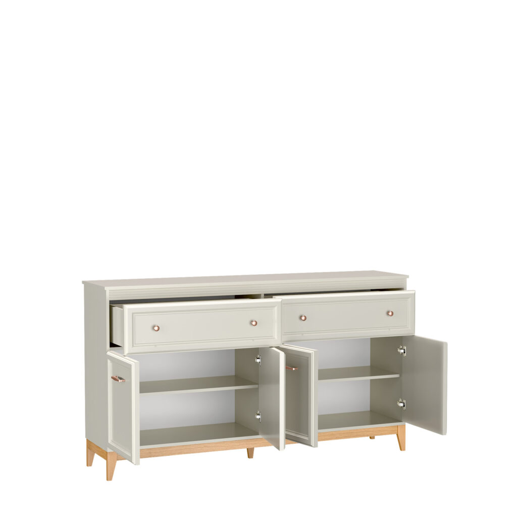 Windsor-2 to komoda, która zachwyca klasycznym designem i nowoczesną wygodą użytkowania. Jej subtelny odcień kaszmiru, w połączeniu z elementami w kolorze dębu naturalnego, tworzy harmonijną kompozycję, która doskonale wpisuje się zarówno w tradycyjne, jak i nowoczesne wnętrza.