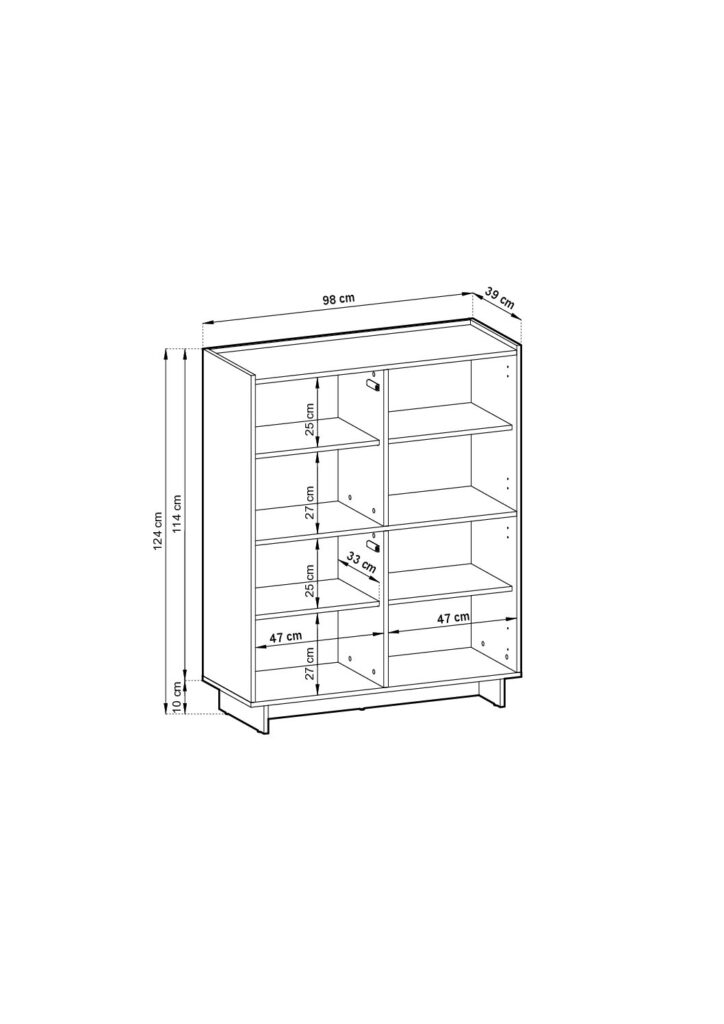– szerokość 98 cm / wysokość 124 cm / głębokość 39 cm