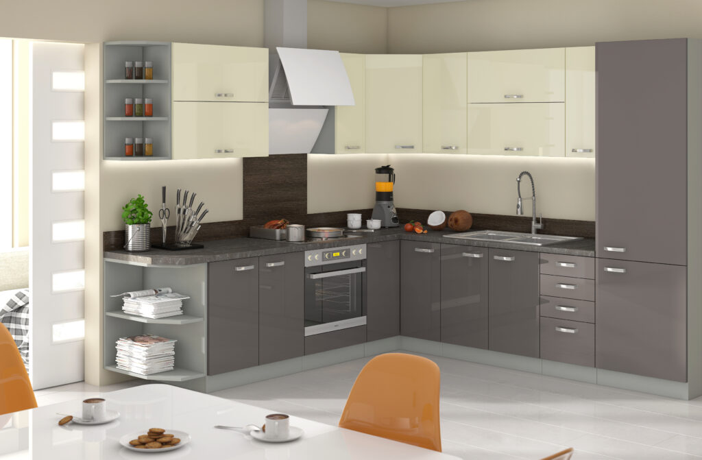 Fronty biały połysk – korpus szary