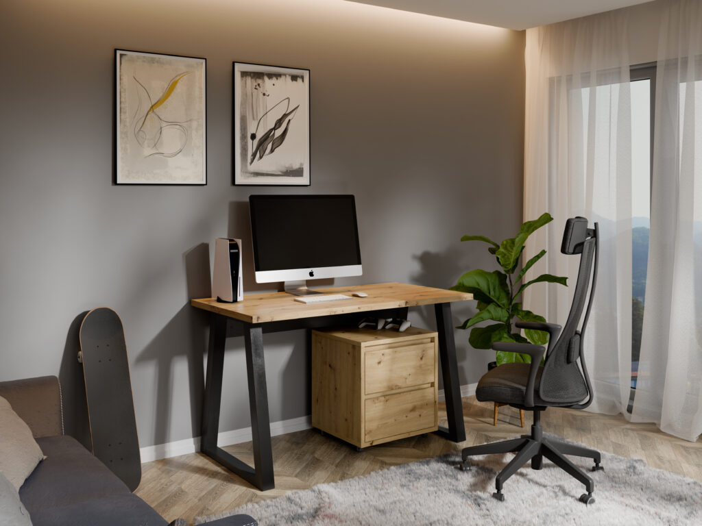 Loftowe biurko Loft Figate + Kontenerek – Białe / Dąb Artisan – Maridex