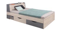 Łóżko młodzieżowe Delta DL15 L/P ze stelażem w kolorze dąb / antracyt. Cena nie obejmuje materaca.