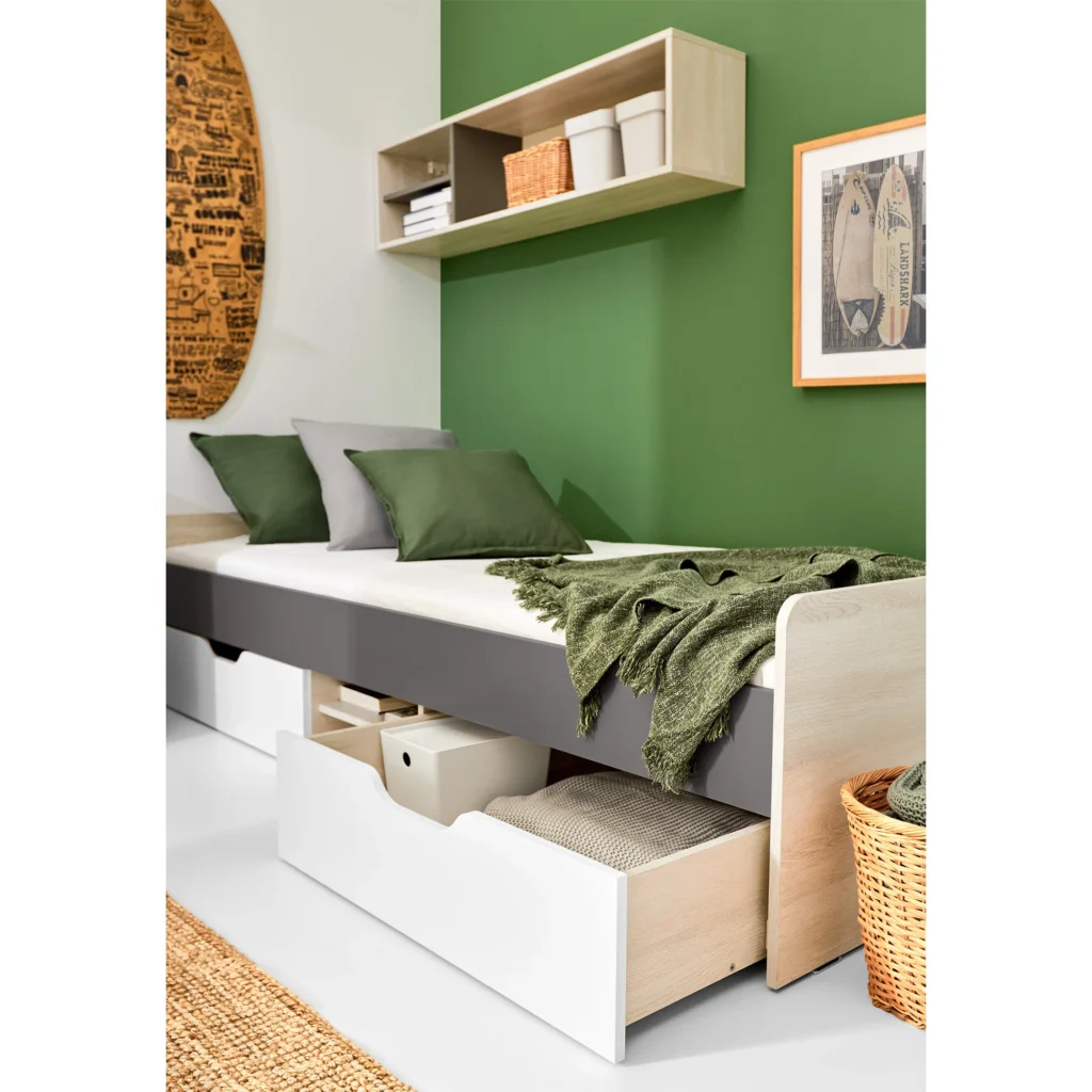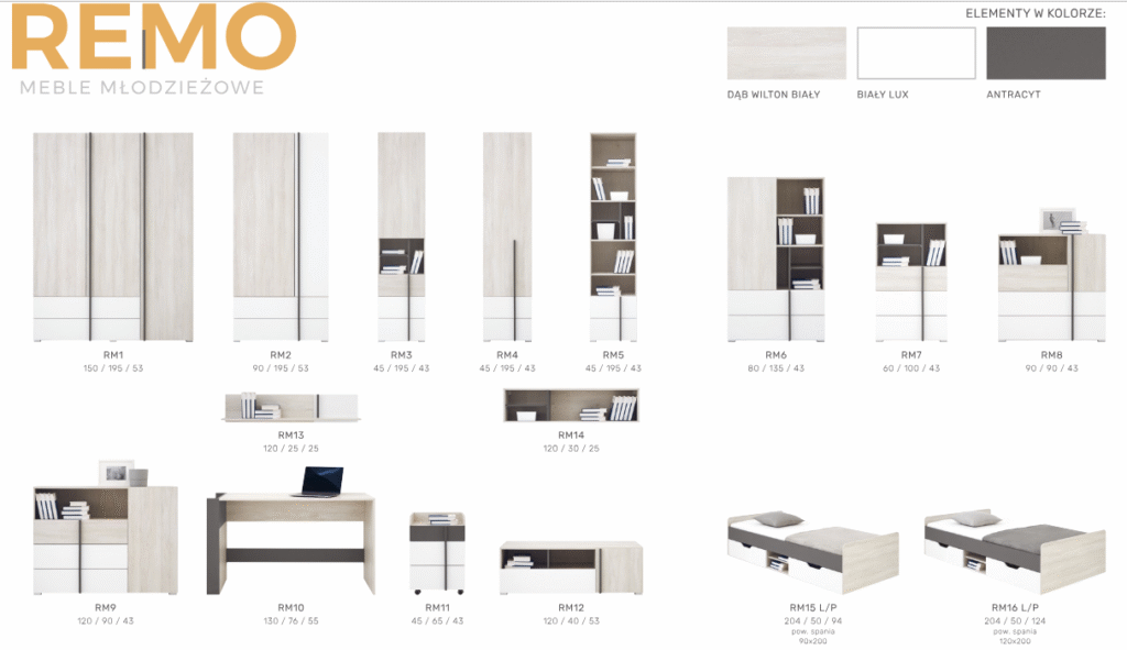 Łóżko Remo RM15 L/P 90 x 200 – Dąb Wilton Biały / Biały Lux / Antracyt