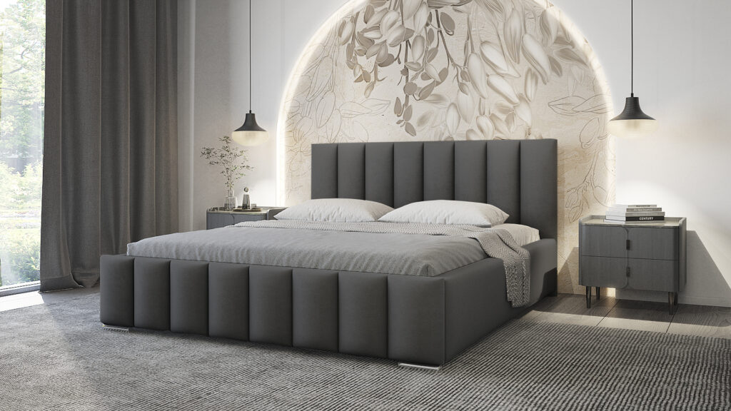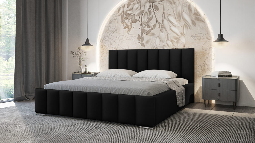 Łóżko tapicerowane Nero 140 cm x 200 cm z pojemnikiem i stelażem pod materac w tkaninie Magic Velvet 2243