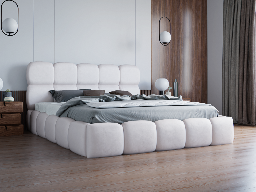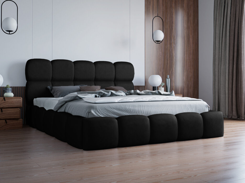 Łóżko tapicerowane Noe 160 cm x 200 cm z pojemnikiem i stelażem pod materac w tkaninie Amor Velvet 4320