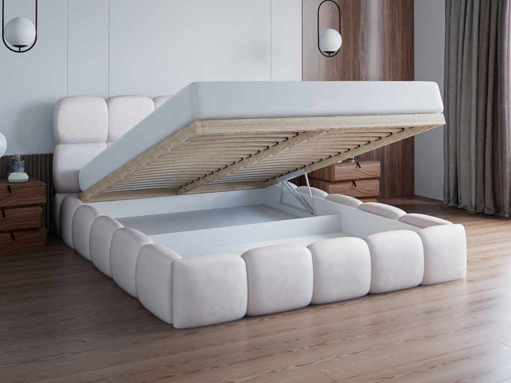 Łóżko tapicerowane Noe 160 cm x 200 cm z pojemnikiem i stelażem pod materac – Kolory