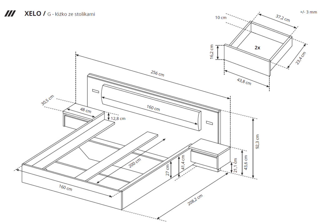 Kolekcja XELO to idealne meble do stworzenia doskonałego miejsca na sen i wypoczynek. Biała, spokojna kolorystyka, w połączeniu z naturalnym, craftowym dębem, pozwoli zbudować magiczną atmosferę w każdej sypialni. Na uwagę zasługuje innowacyjny system otwierania drzwi przesuwno – składany. Dzięki temu rozwiązaniu mamy praktycznie nieograniczony dostęp do rzeczy przechowywanych w szafie.