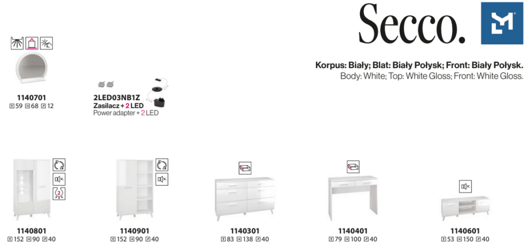 Meble są fabrycznie nowe i zapakowane w oryginalne opakowanie. W zestawie dołączona instrukcja i wszystkie potrzebne akcesoria.