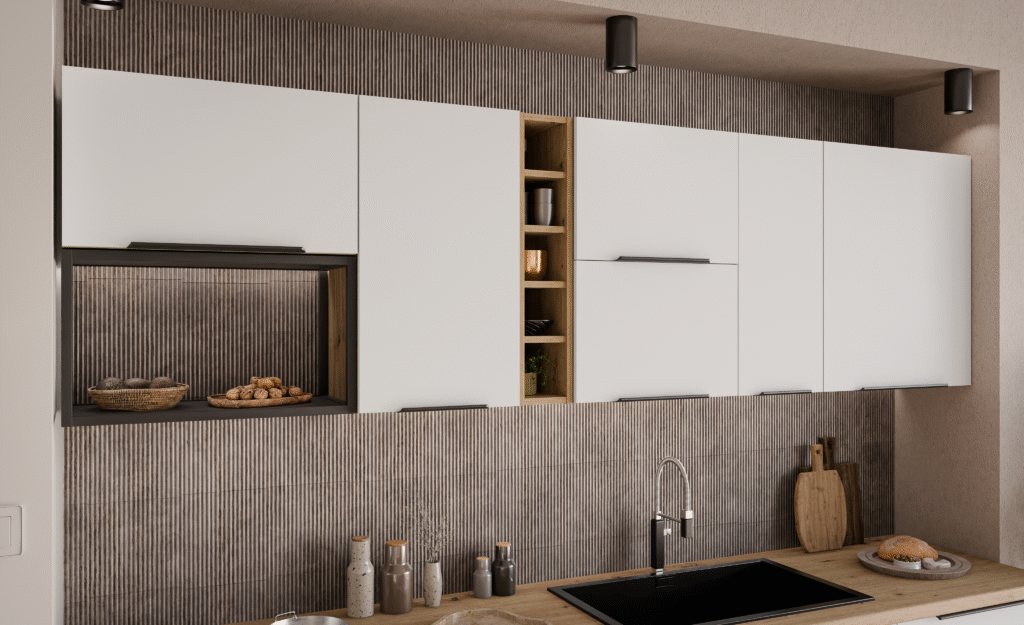Nowoczesny design spotyka się z funkcjonalnością – kolekcja ARIA oferuje 5 wyjątkowych kolorów frontów oraz 4 eleganckie kolory korpusów które możesz dowolnie łączyć i miksować.Stwórz kuchnię,która w 100 % odzwierciedli Twój gust.Dzięki innowacyjnemu zastosowaniu we frontach technologii Anti Fingerprint nie zostawiasz na nich śladu po palcach.Fronty zachowują perfekcyjny wygląd a Ty masz mniej czyszczenia.