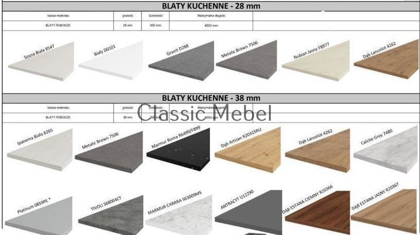 Zestaw nie zawiera w cenie blatów na zdjęciu.W sklepie dostępna jest oferta z blatami.