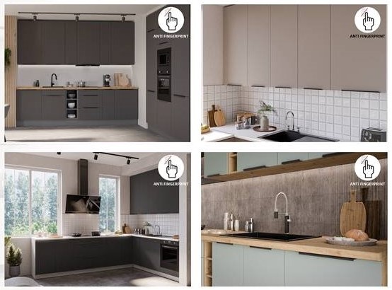 Nowoczesny design spotyka się z funkcjonalnością – kolekcja  ARIA oferuje 5 wyjątkowych kolorów frontów oraz 4 eleganckie kolory korpusów które możesz dowolnie łączyć i miksować.Stwórz kuchnię,która w 100 % odzwierciedli Twój gust.Dzięki innowacyjnemu zastosowaniu we frontach technologii Anti Fingerprint nie zostawiasz na nich śladu po palcach.Fronty zachowują perfekcyjny wygląd a Ty masz mniej czyszczenia.