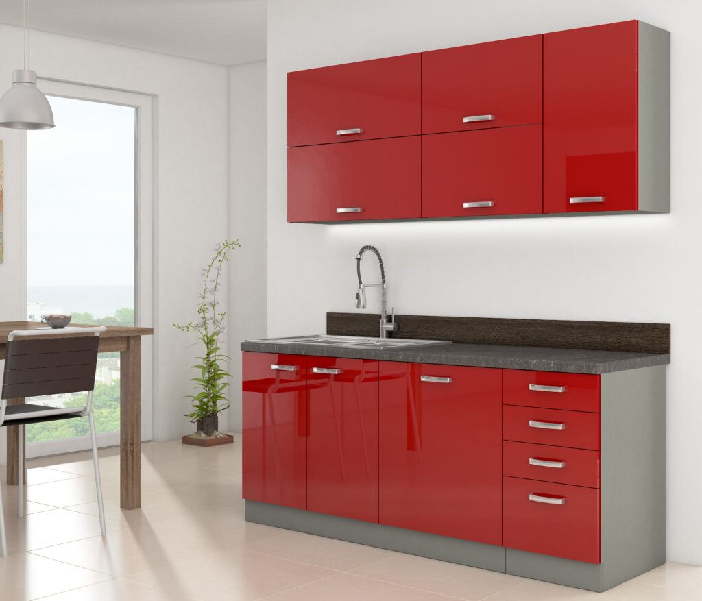 Nowoczesne meble kuchenne wykonane z wysokiej jakości materiałów odpowiednich do zastosowania w kuchni.