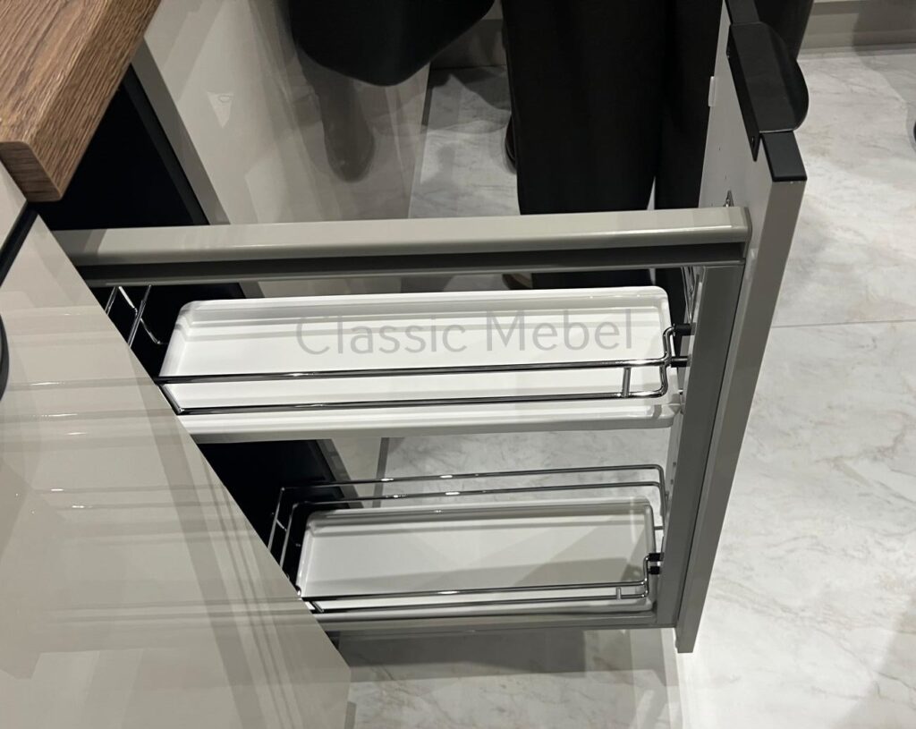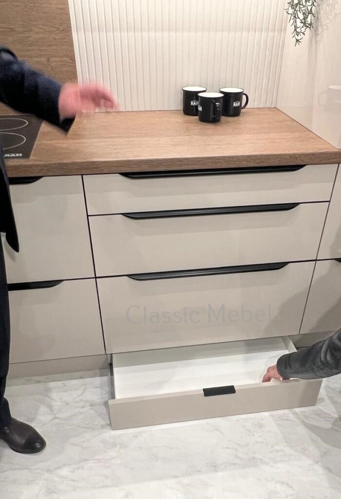 Dzięki temu że producent zastosował duży wybór opcji takich jak np. wybór rodzaju prowadnic szuflad, wybór wysokości nóżek, ogromny wybór szafek w różnych rozmiarach możemy dostosować kuchnie do indywidualnych preferencji klienta.