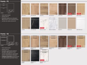 W galerii zdjęć są również wzornik blatów do wyboru.Od jasnych bieli przez beże i szarości do pięknych dekorów w kolorze drewna lub kamienia naturalnego.