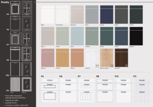 Fronty typu F wykonane zostały z płyty MDF frezowanej pokrytej folią o grubości 16 mm i dodatkowo zostały zabezpieczone obrżeżem ABS dla długiego użytkowania.