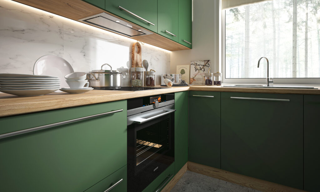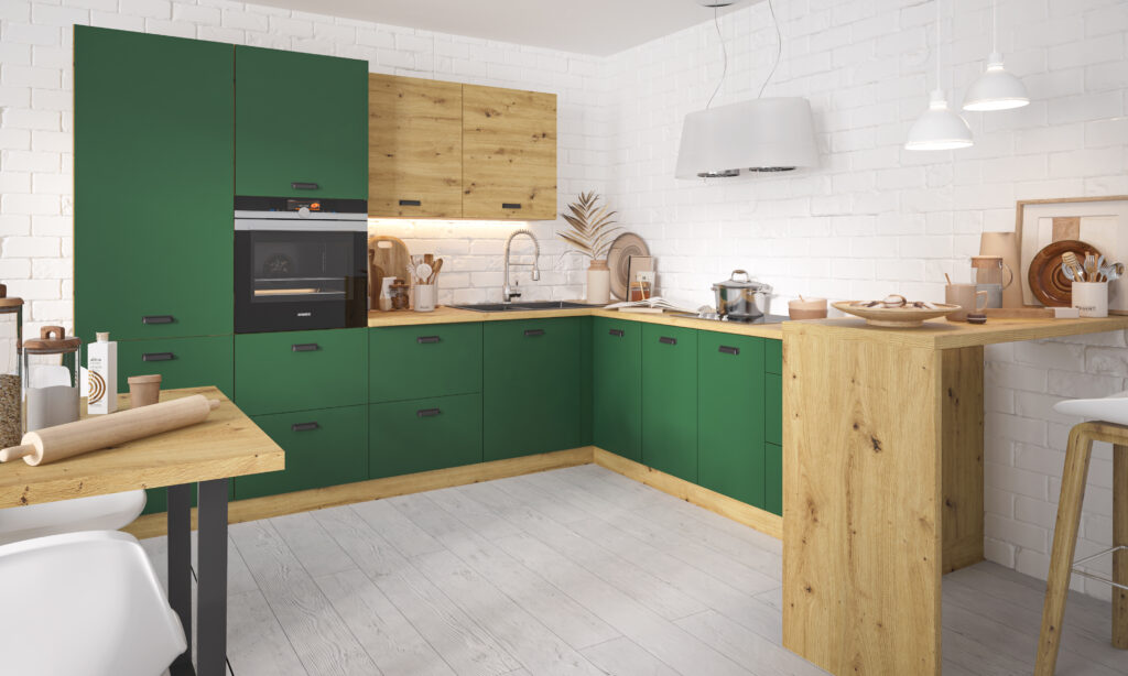 Fronty w serii Silver w kolorze zieleń labrador wykonane zostały z trwałej płyty laminowanej o grubości 18 mm.