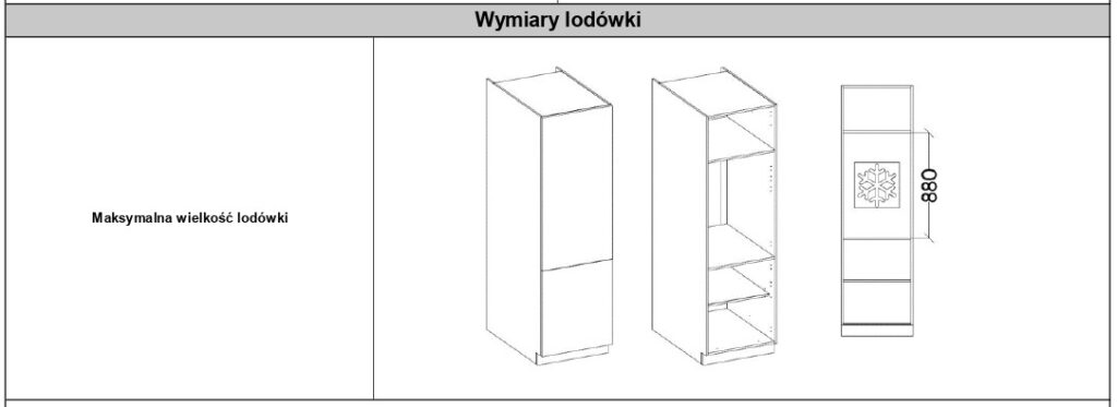 Komin do zabudowy lodówki jest przeznaczony do sprzętu o wymiarach jak poniżej na zdjęciu :