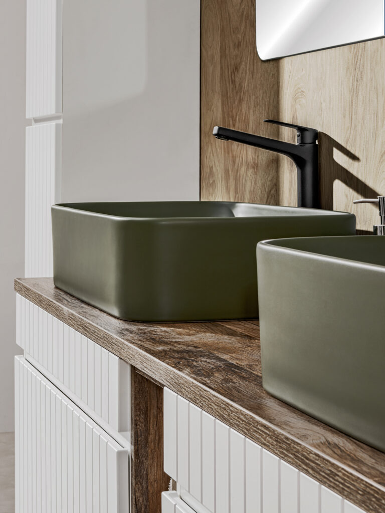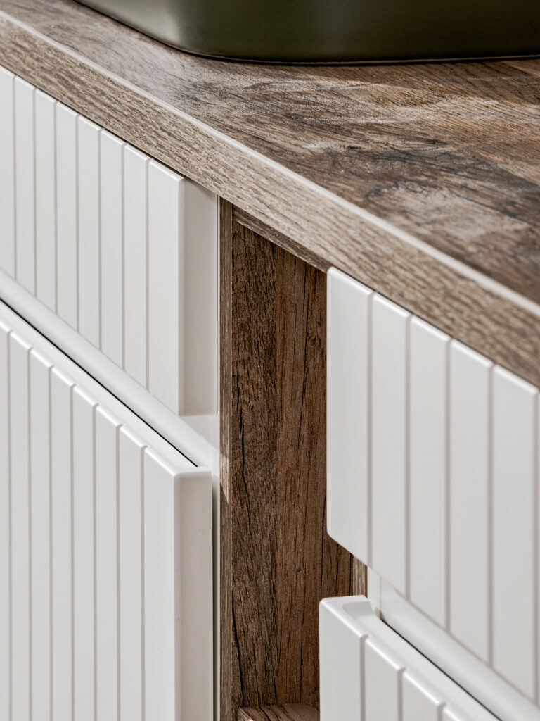 Kolekcja ICONIC WHITE, to projekt, w którym zostały wykorzystane pionowe frezowania we frontach i korpusie. Ryflowanie, to szczególnie atrakcyjny i wszechstronny efekt wzorniczy wprowadzający ruch i płynność do każdego wnętrza łazienki.