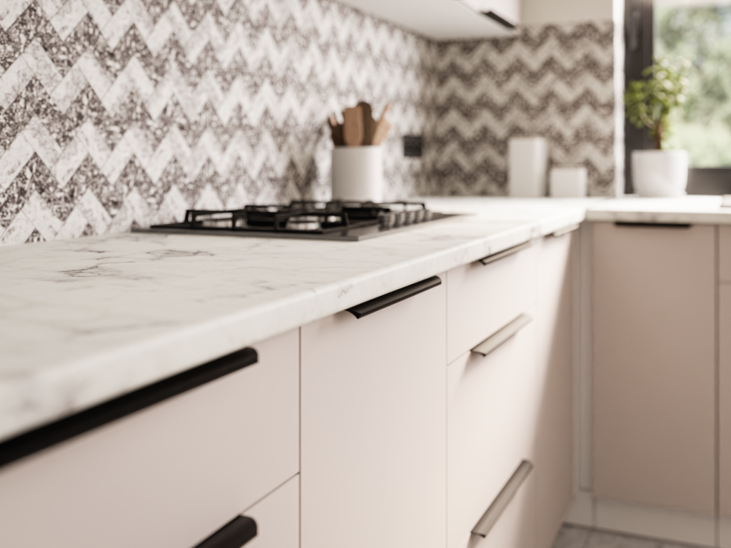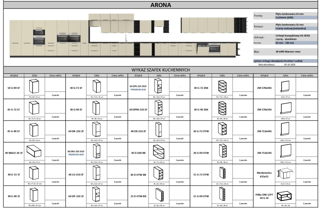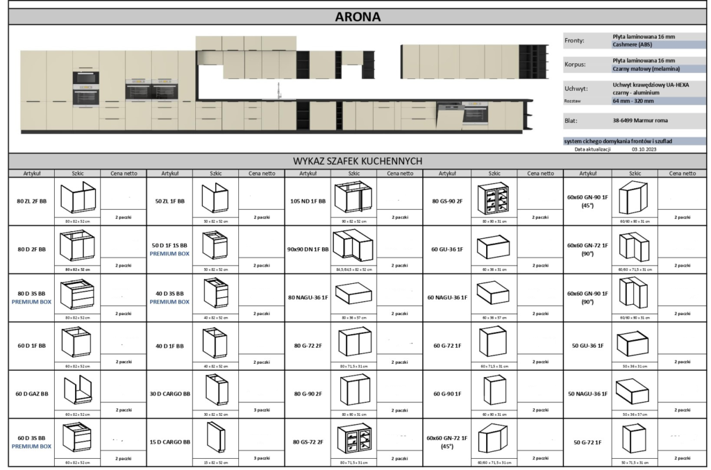 Przedmiotem oferty jest zestaw narożny mebli kuchennych z kolekcji Como Kaszmir widoczny na zdjęciu głównym w galerii.