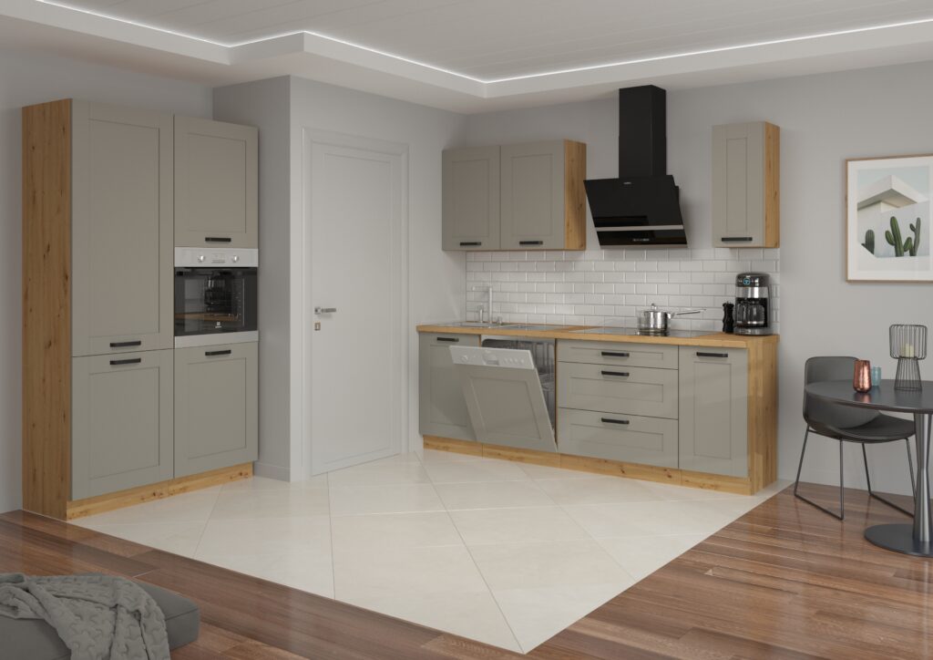 Meble Szafki Kuchenne W Stylu Skandynawskim Luna Ramka Dust Grey / Dąb Artisan – Lempert