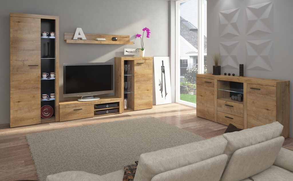 Nowoczesna meblościanka z miejscem na telewizor nadająca się do każdego wnętrza. Nadaje się do salonu. Meblościanka zachwyci swoim wyglądem oraz funkcjonalnością.