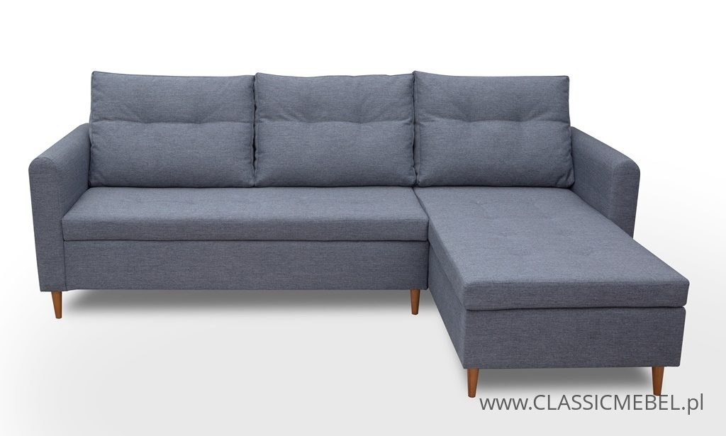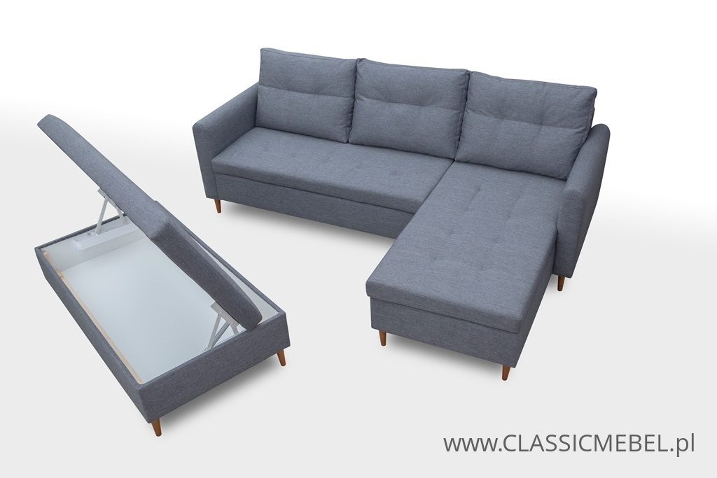 Narożnik z funkcją spania marki Kinas, wykonany na sprężynach falistych.