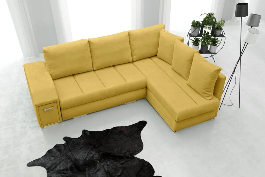 Piękny narożnik  Arni z funkcją spania i wysuwanym barkiem marki Kinas