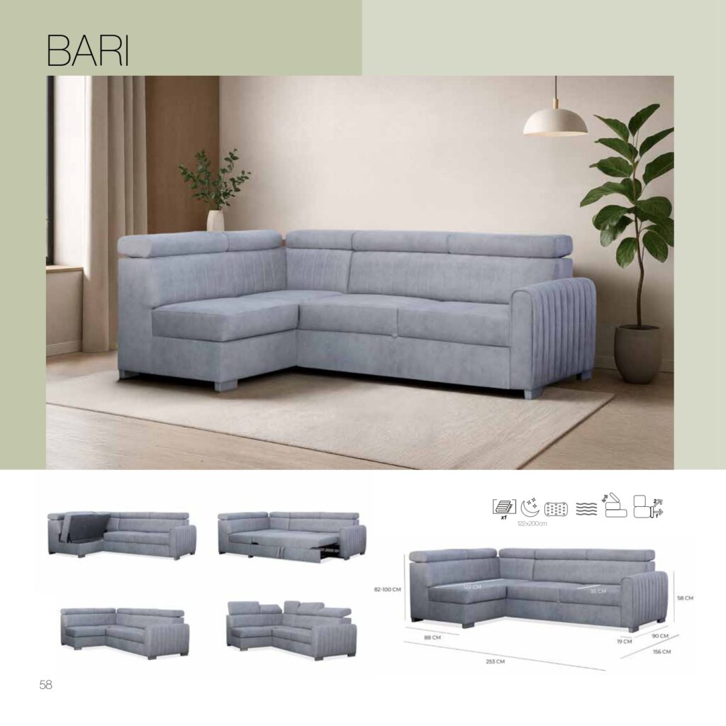 Narożnik Bari to stylowy mebel o wyjątkowej funkcjonalności,który doda Twoim wnętrzom oryginalnego charakteru i przytulności.