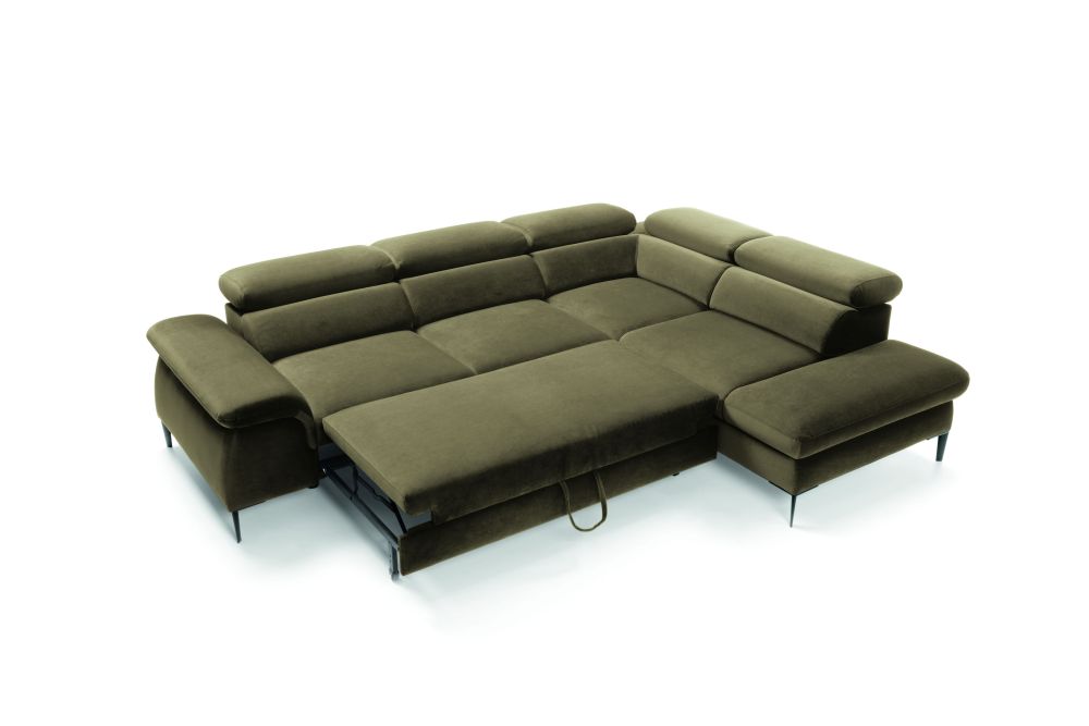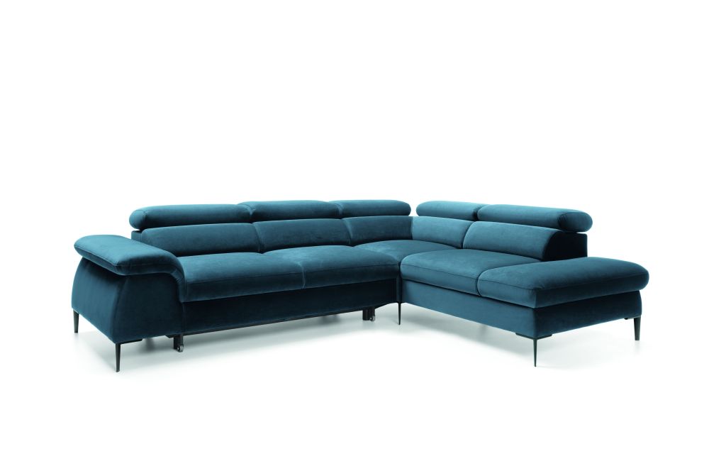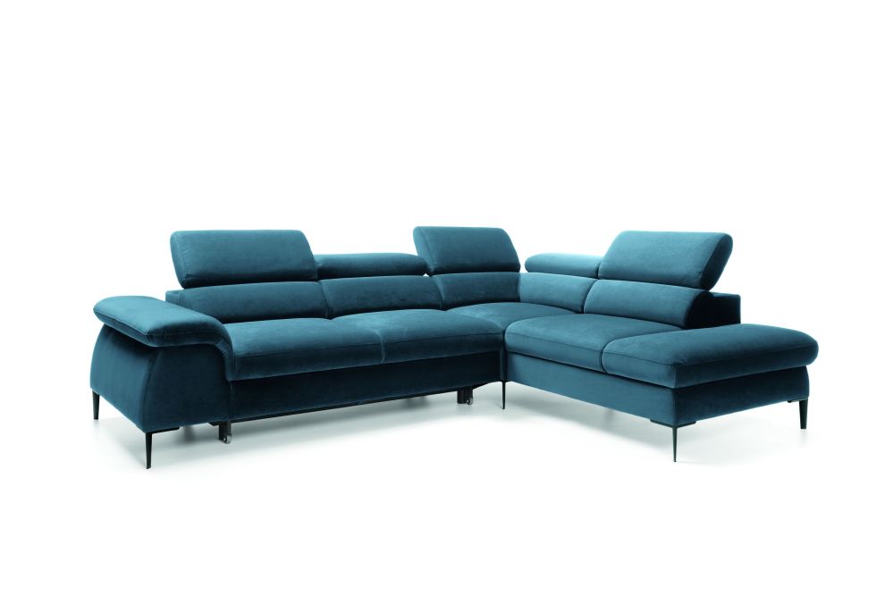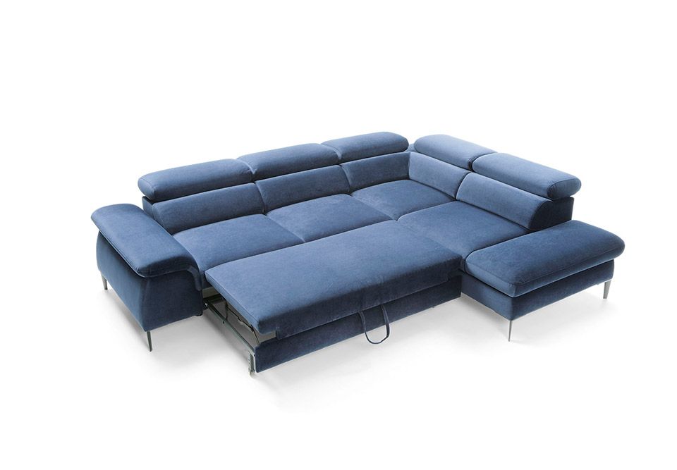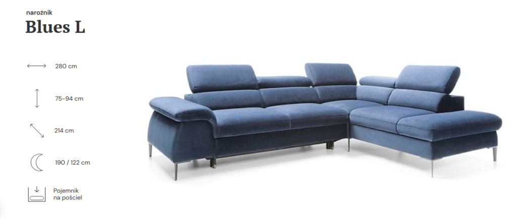 Super wygodny, nowoczesny narożnik Blues L, z funkcją spania oraz pojemnikiem na pościel.