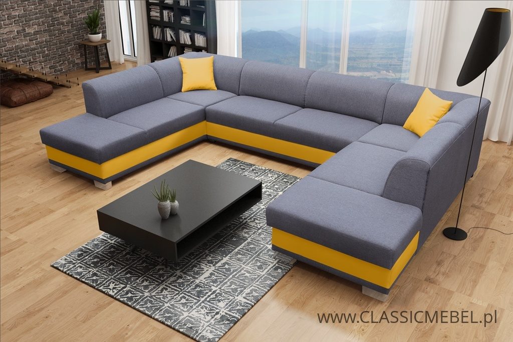 Nowoczesny Narożnik Darco U z funkcją spania, obszernymi pojemnikami na pościel, wykonany na sprężynie falistej. Narożnik wykonany jest na sprężynach falistych a nóżki są chromowane.