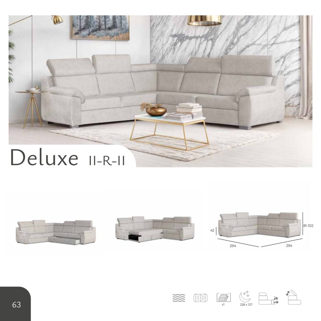 Cena dotyczy narożnika Deluxe OT + II + Róg + II w I grupie tkaninowej.Do wyboru są 4 grupy wysokojakościowych tkanin obiciowych.
