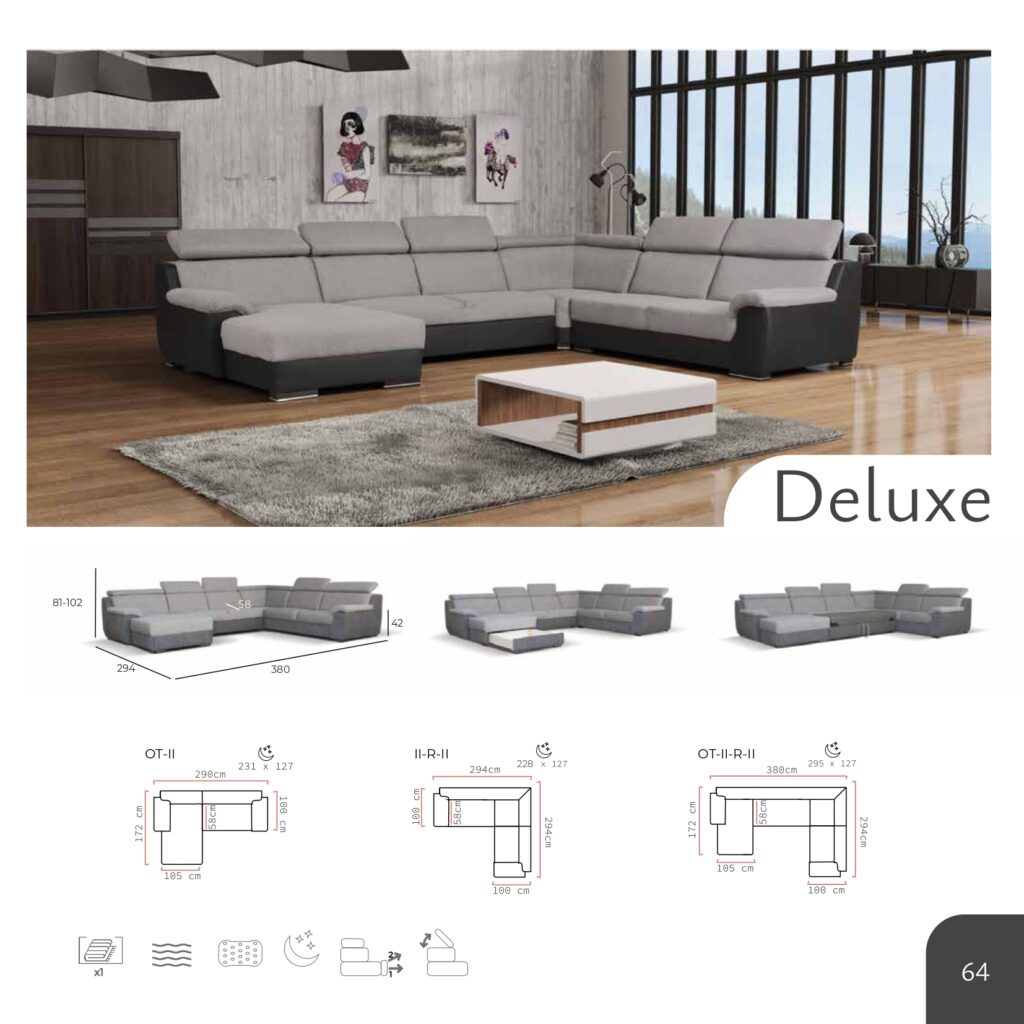 Narożnik Deluxe OT + II + Róg + II to stylowy mebel o wyjątkowej funkcjonalności,który doda Twoim wnętrzom oryginalnego charakteru i przytulności.
