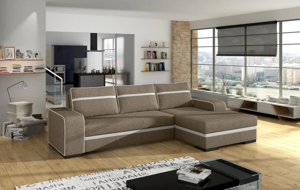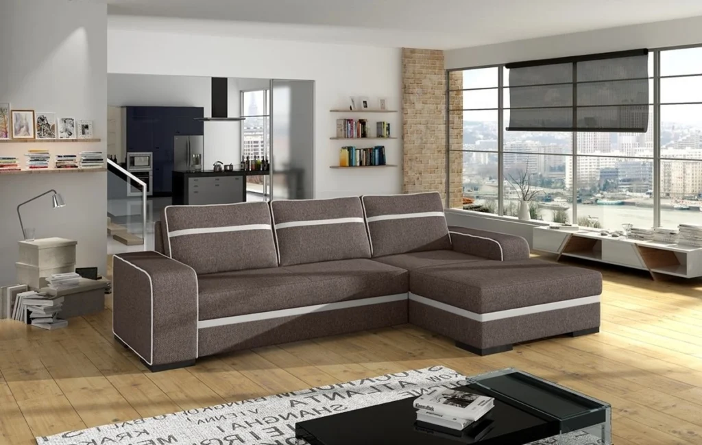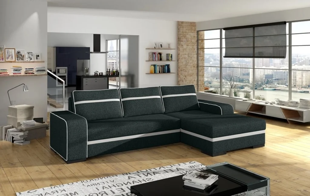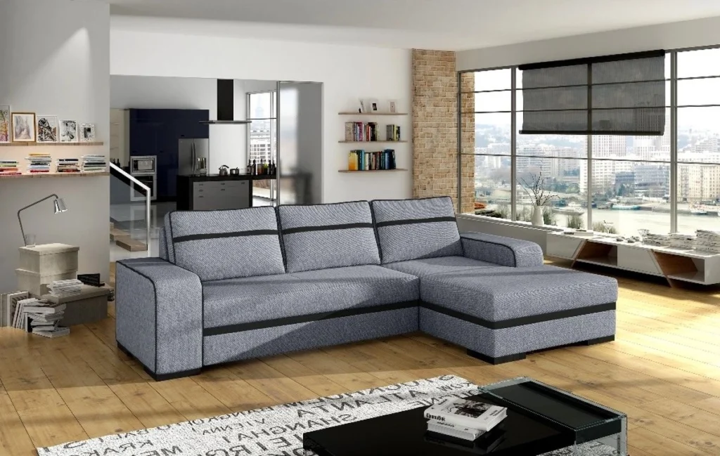 Zgrabny i szykowny narożnik do salonu.