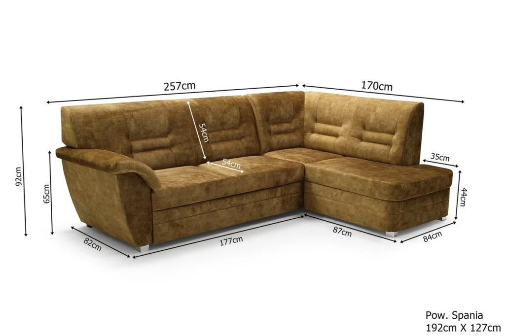 Narożnik marki Kinas, wykonany na sprężynach falistych.