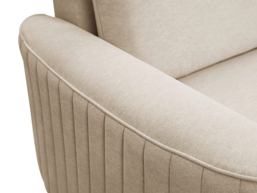 Ciekawa bryła mebla wzbogacona została dekoracyjnymi głębokimi przeszyciami na bokach mebla.