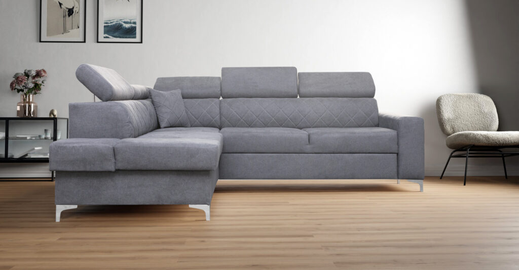 Kształty narożnika nadają mu przytulny charakter jednocześnie wprowadzając do salonu harmonię i spokój.