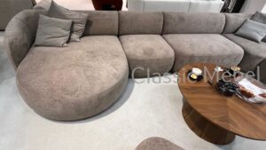 Nowoczesny, duży narożnik modułowy NOBO w obłych modnych kształtach.Zaokrąglone,obłe kształty tej bryły nadają mu nowoczesnego charakteru.