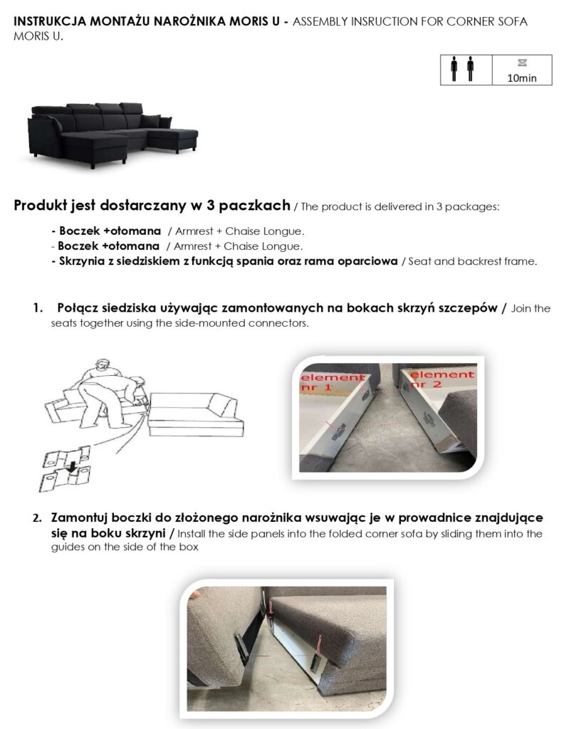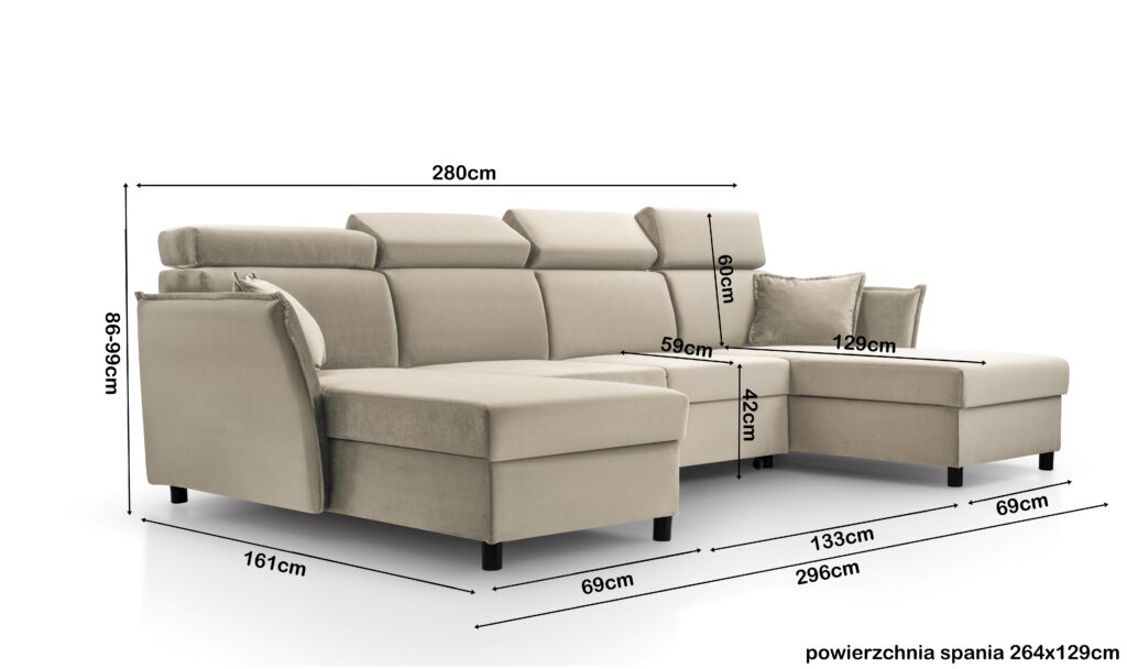Narożnik Moris Podkowa U – 280 cm na 2 x 161 cm z funkcją spania